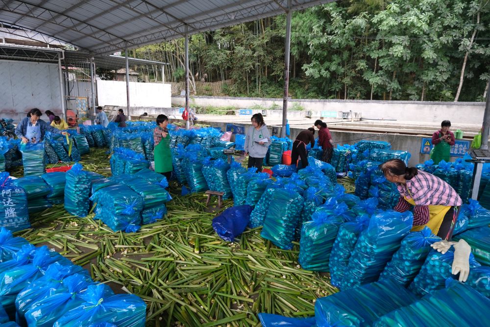 在丽水市景宁畲族自治县大漈乡茶林村,新采的茭白正在被打包装车。新华社记者 郑梦雨 摄