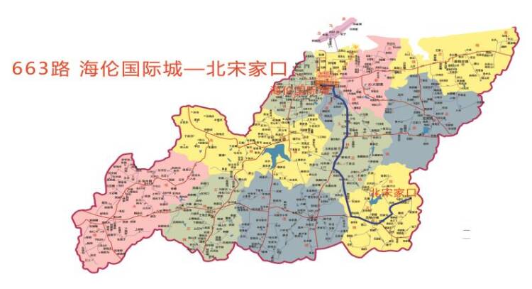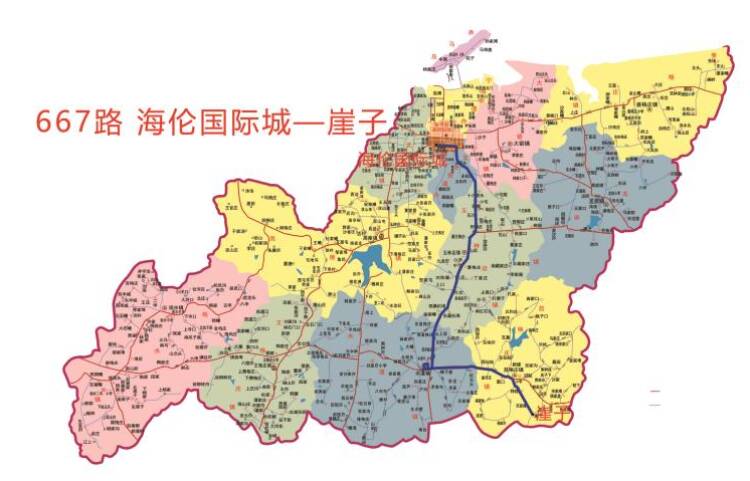 (一)线路走向由海伦国际城发车,沿工商大街、昆嵛山路、S206、昆西路、S206、未名路、G206、莒兴路、昆嵛街、未名路运行至北宋家口。(二)站点设置下行站点:海伦国际城、杰座欧洲城西站、牟平三联家电、广联花园东站(单向)、阳光名居、锦秀豪庭、沁水苑百货批发市场、沙家庄、照格庄东站、牟平环卫、高格庄、曲格庄、十六里头、小宅、埠后、茶棚、石沟、孙格庄、西李格庄、磨王格庄、山后、玉林店、曹格庄、对阵圈、后杨家庄、北台、前杨家庄、北红石头西站、南红石头、共和庄、西垛夼、西仙姑、东仙姑南站、蒿口、莒格庄场站、西莒格庄、莒格庄镇政府、莒格庄小学、宫家沟、长岭、马家庄、中国院子、北宋家口。上行站点:北宋家口、中国院子、马家庄、长岭、宫家沟、莒格庄小学、莒格庄镇政府、西莒格庄、莒格庄场站、蒿口、东仙姑南站、西仙姑、西垛夼、共和庄、南红石头、北红石头西站、前杨家庄、北台、后杨家庄、对阵圈、曹格庄、玉林店、山后、磨王格庄、西李格庄、孙格庄、石沟、茶棚、埠后、小宅、十六里头、曲格庄、高格庄、牟平环卫、照格庄东站、沙家庄、沁水苑百货批发市场、锦秀豪庭、阳光名居、广联花园(单向)、牟平三联家电、杰座欧洲城西站、海伦国际城。(三)首末班时间海伦国际城发车时间:12:00、16:10;北宋家口发车时间:6:00、14:00。