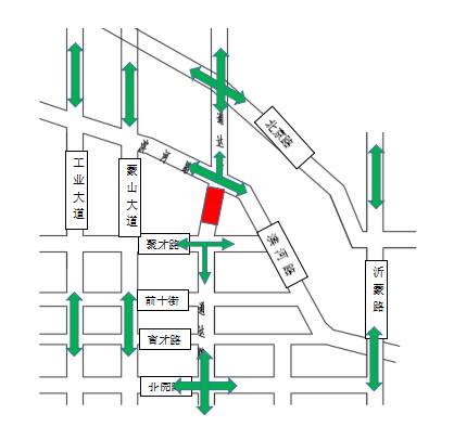 施工期间全封闭该处交通,滨河路东西方向保持畅通,聚才路东西方向保持畅通,南北方向通行车辆和行人可选择合适路线绕行。