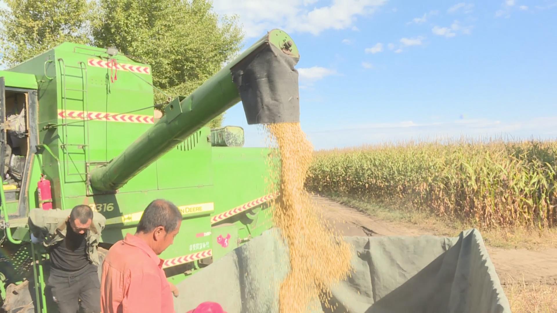 在老山头村的大豆田里,金黄的黄豆颗粒饱满,沉甸甸的豆穗压弯了腰,黄豆散发着缕缕清香,一派丰收景象。一台大型联合收割机在田间隆隆作响,一垅垅大豆转眼间就被收割,收割机切割、脱粒、粉碎等工序一气呵成,然后把脱壳的黄豆粒倒入农用车里,农户们看着饱满的黄豆粒,脸上露出了开心的笑容。