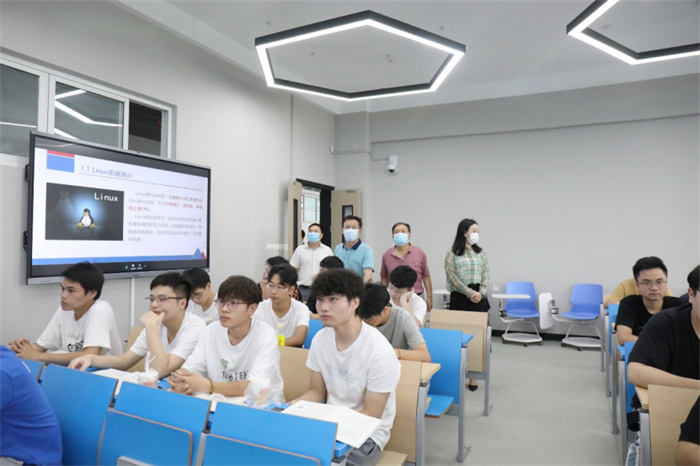 本学期行课的最大亮点是很多课程从传统教室转到了智慧教室行课。为全面提升学校教育教学信息化建设水平,营造良好的信息化教学环境,推动信息技术与课堂教学的深度融合,学校大力开展智慧教学平台建设,本学期主教学楼43间智慧教室建设完成并正式投入使用。在智慧教室里,具有“电子白板”和触控功能的高清大屏取代了传统的投影幕布,教室两侧墙壁还加设了多块电子辅助屏,对主屏进行扩展显示。教室内的桌椅更新为可移动拼接桌椅,方便师生们根据不同的学习内容开展不同组合形式的分组讨论。通过重构教学环境,重塑教室内教师的教学行为与学生的学习任务,实现课堂教学“3D”互动,让课堂内容“触手可及”,使课堂更为生动有趣。同学们普遍反映升级改造后的教室声音清晰,大屏画面显示效果好,提升了学习获得感;老师们也反馈智慧环境的升级进一步提升了课堂教学效果。