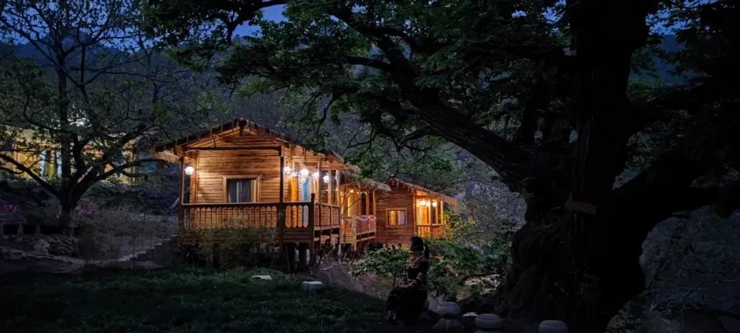 在核桃古树林中,建有一幢幢具有浓郁民族特色的民宿、星空房、核桃屋、核桃茶餐厅、核桃美食加工房、核桃文化书苑,一条条塑木栈道、透水砖铺游道绕行林间,将各个区块串联在一起,整个山寨如梦如幻、神秘深幽。