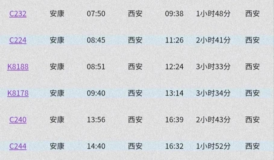 此次调图后,中国铁路西安局集团有限公司在持续开行安康站至西安站、安康站至韩城站时速160公里复兴号动车组的基础上,安康站至铜川东站之间又首次开行时速160公里复兴号动车组,进一步方便安康市民前往铜川、耀州、阎良、富平等方向的出行。