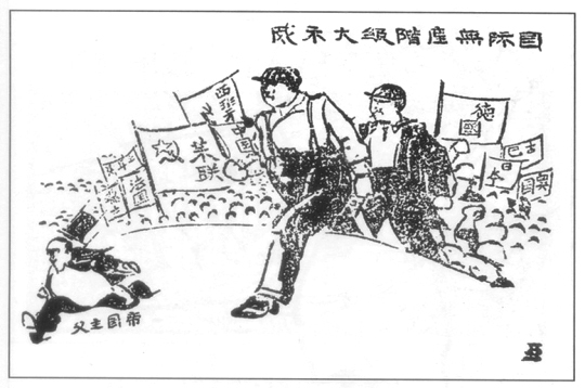 1934年5月1日《红色中华》第183期第4版刊发了《五一劳动节前夜国际无产阶级示威的铁流》报道,配登了“纪念‘五一’全世界无产阶级团结起来!!”标语。在报道中配有黄亚光创作的一幅《国际无产阶级大示威》的漫画。画面中间有两位工人形象的人物率领世界无产阶级的示威游行大军昂首阔步向前,后面有苏联、中国、西班牙、德国、英国、巴西、日本等国工人阶级的旗帜及浩浩荡荡的示威游行大军,帝国主义分子在世界无产阶级强大的示威风暴中闻风丧胆,狼狈逃窜。该漫画热情歌颂了全世界不同民族、不同国家的无产阶级工农大众联合起来的伟大力量,鼓舞了无产阶级的战斗热情。