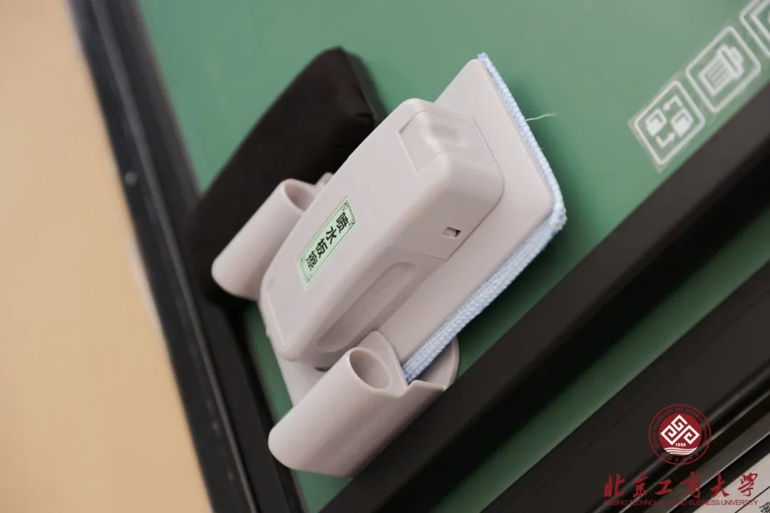 教室内使用U盘录制的课堂实录,下课拔走即带走,无需手动下载;教师讲台可升降,配有无尘膜衣粉笔、硬质粉笔、软质粉笔、喷水板擦、干湿两用板擦、电子教鞭、眼镜收纳,讲台边配有水杯托、衣帽钩,学生桌椅也配有桌斗,方便师生放置个人物品。