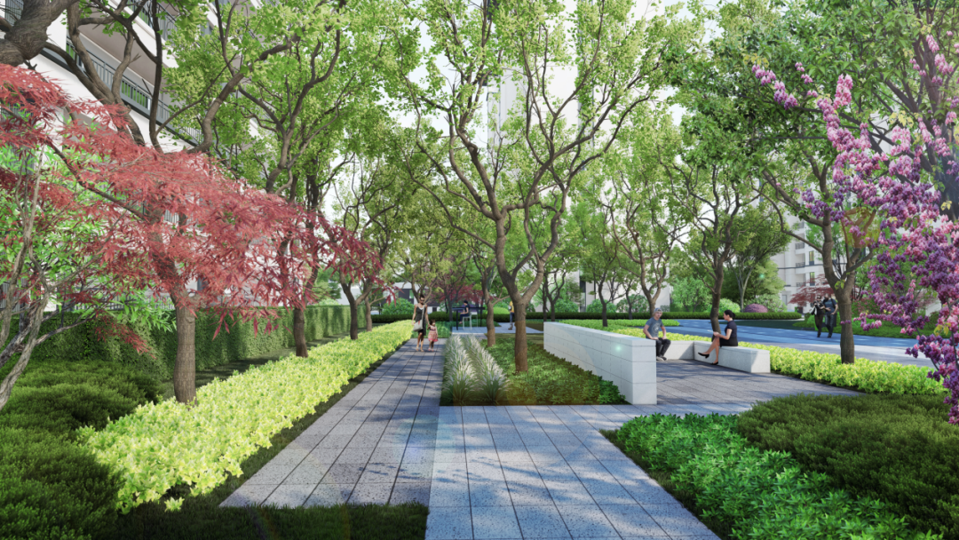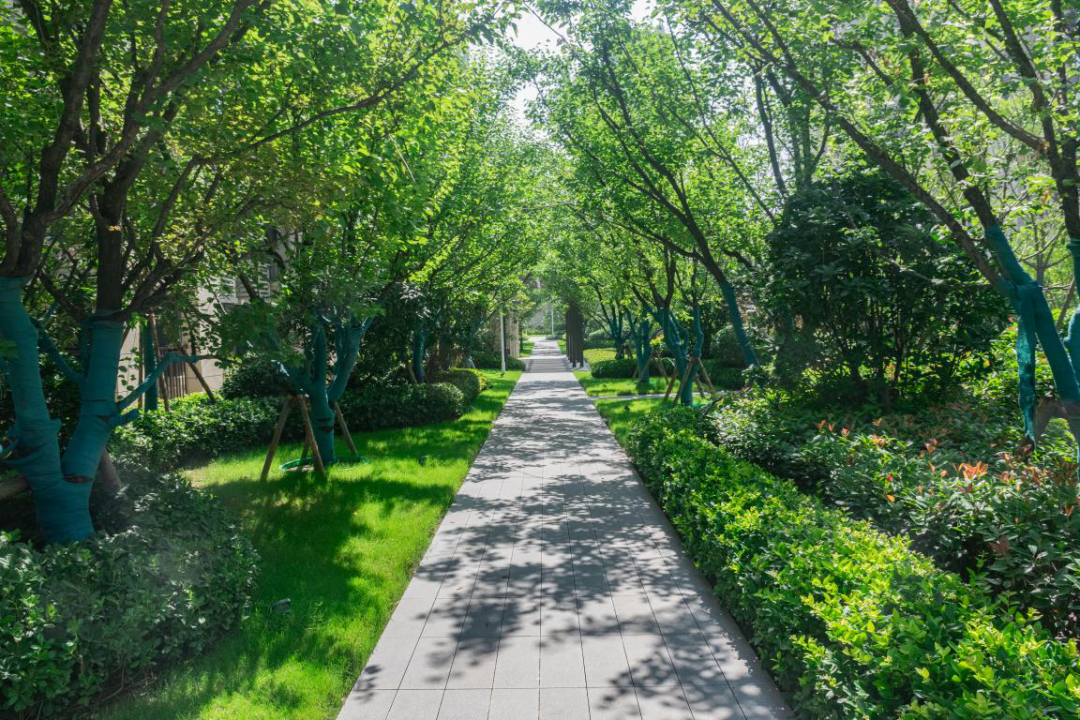 天园的建筑采用稳健的平行式排布,环绕中轴园林围合成一个整体,能最大限度减少楼栋之间的遮挡,通风、采光效果都上升一个台阶。