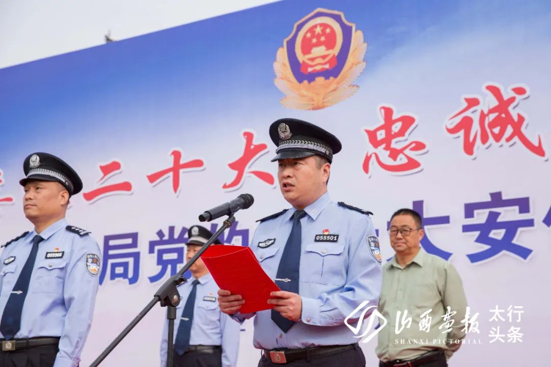 “对党忠诚、服务人民、听党指挥、顽强拼搏......”全体参会人员庄严宣誓,表示将对党忠诚、服务人民,顾全大局、听从指挥,严守纪律、恪尽职守,想细做实、坚持坚守,坚决打赢党的二十大安保工作攻坚战。