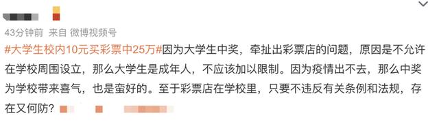有部分网友对大学里开彩票站表示质疑,毕竟大学生没有收入,万一沉迷于此不太好。