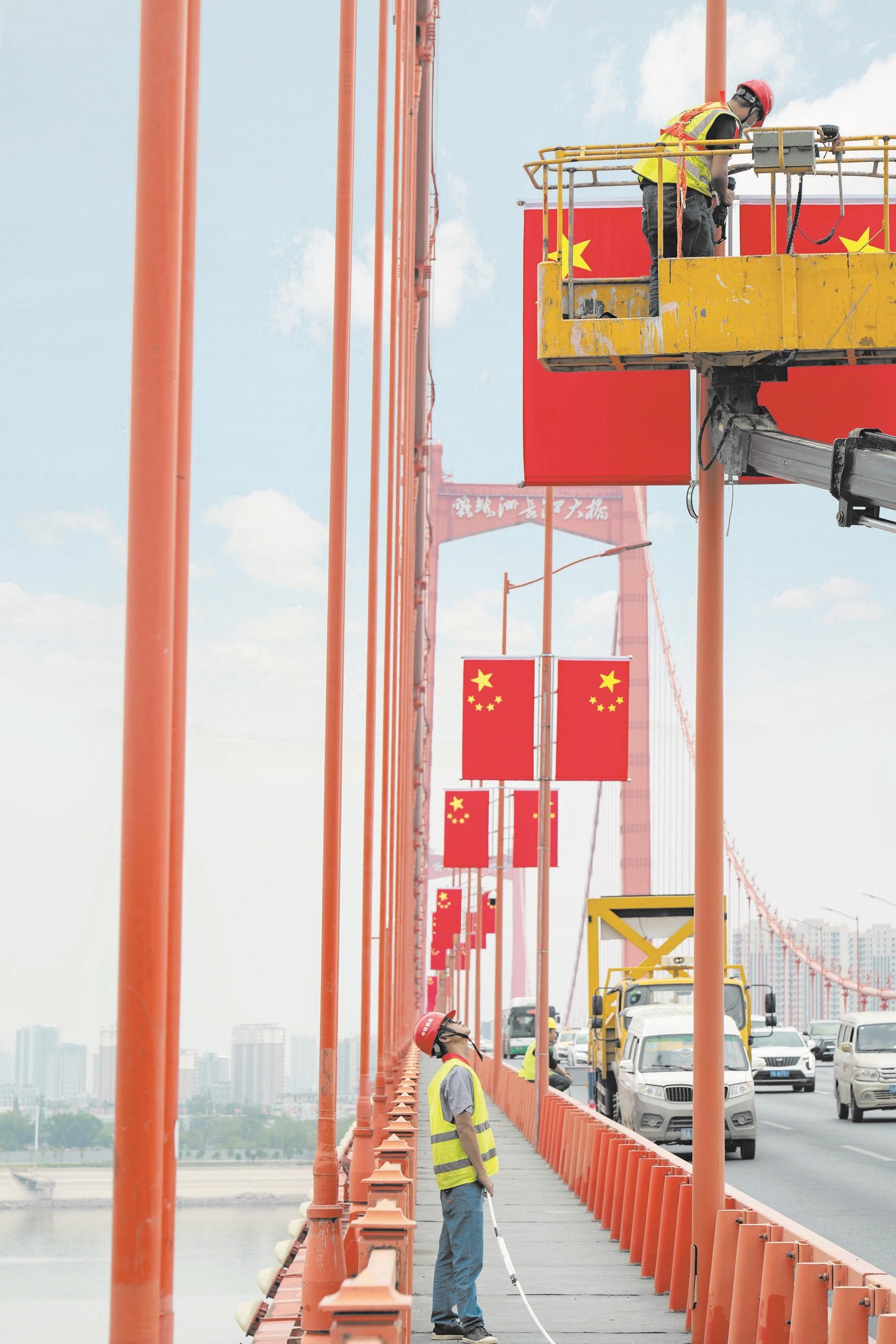 “今年国旗的材质进行优化,采用牛津布材质,防水耐磨。安装国旗的构件也有提升,里面增加一个橡胶垫圈,既防滑,也可防止金属构件磨损漆面,保护路灯杆。”武汉市城管执法委景观管理处相关负责人说。
