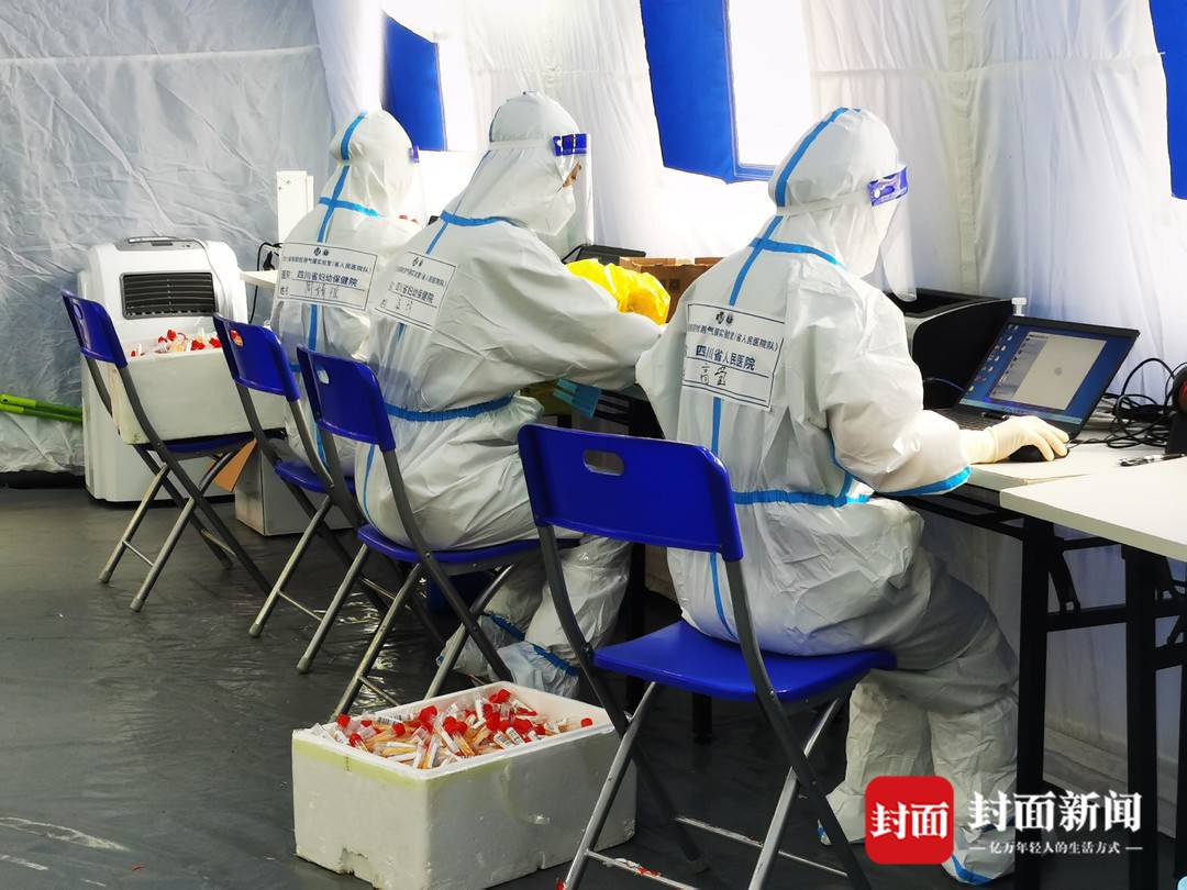9月2日8:30,核酸检测气膜实验室(新都)正式启用。该实验室由8个部分组成,分别为2个样本前处理处、1个试剂准备舱,3个核酸提取舱,2个扩增分析舱,先后承担了成都、宜宾、内江、遂宁等地核酸检测任务。实验室核酸检测队由四川省人民医院101人、省直属10家医疗机构123人,共计224名队员联合组队,后期又增加了江苏援川51名队员。