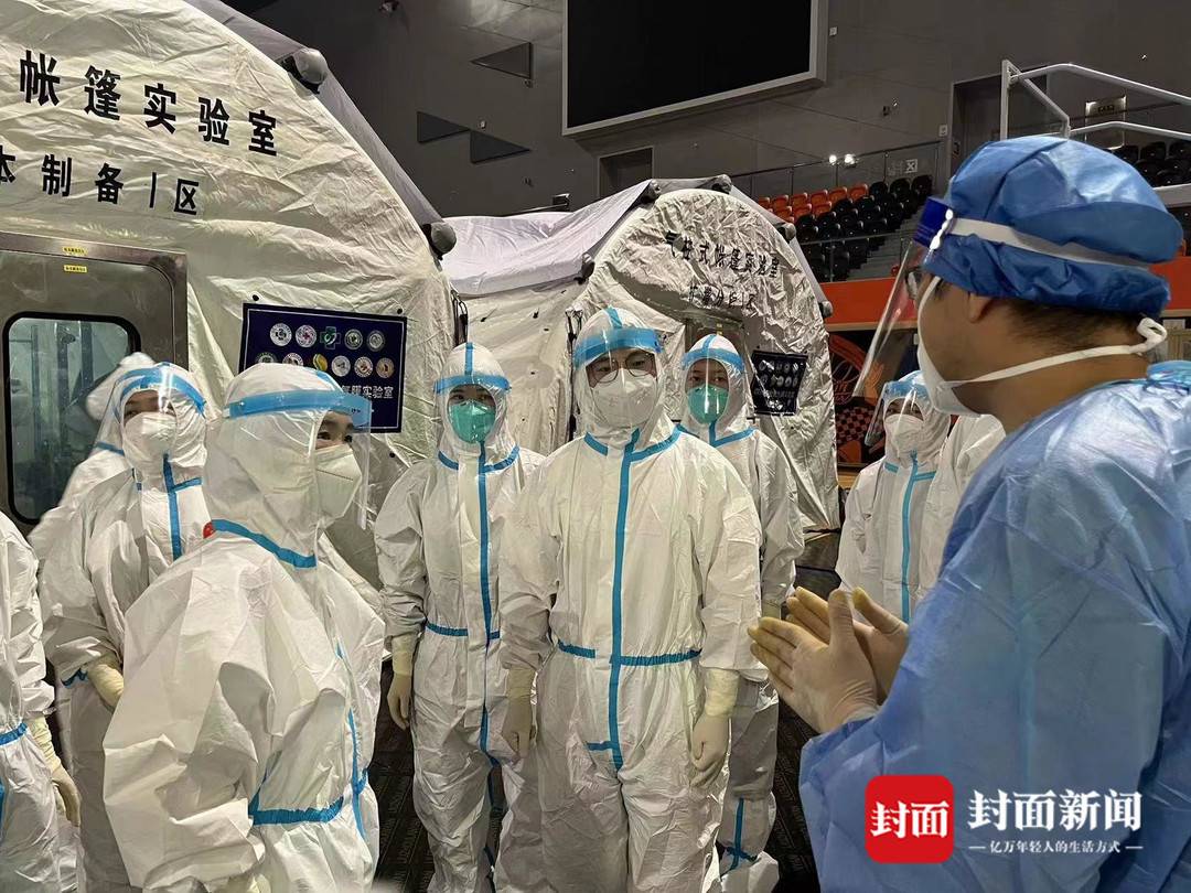 据悉,8月初赴海南支援回蓉后,队伍经过短暂隔离,又马不停蹄奔赴新都,支援成都抗疫。在成都疫情稳定后,队伍又扎根新都,接收检测宜宾、内江、遂宁等地的标本,为全省地市州的抗疫提供了有力保障和支撑,队员们以顽强的毅力和过硬的作风,一直坚守到了最后至今日休舱。为了持续保持队伍的战斗力,带队负责人和保障人员想方设法确保队员的休息时间,同时还通过线上生日、线上赏月、线上心理咨询,加秋衣、送膏药、添夜宵、恳谈会等形式,纾解队员焦虑,保持团队昂扬斗志和持久战斗力。