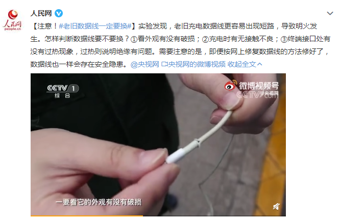 最后提醒:老旧数据线一定要换! 这些数据线容易破损,阻燃性差,造成短路,引发火灾。