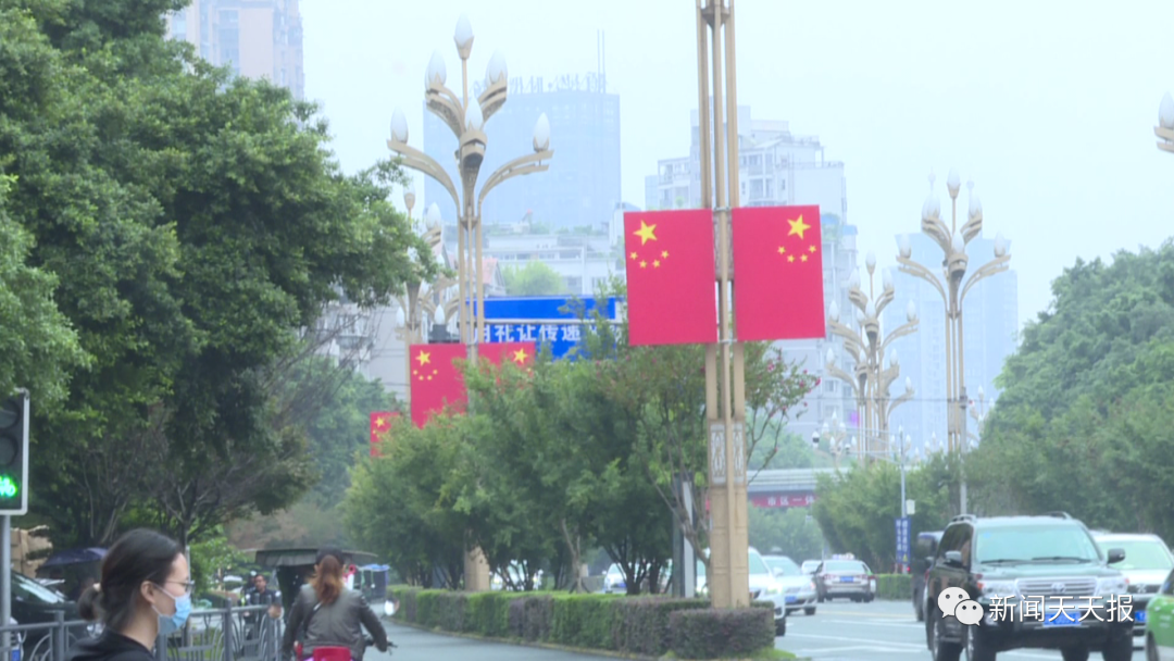 记者在乐山城区的一些主干道上看到,道路两侧悬挂起鲜艳的五星红旗,形成了一道靓丽的风景,也为即将到来的国庆佳节增添了浓浓的节日氛围。
