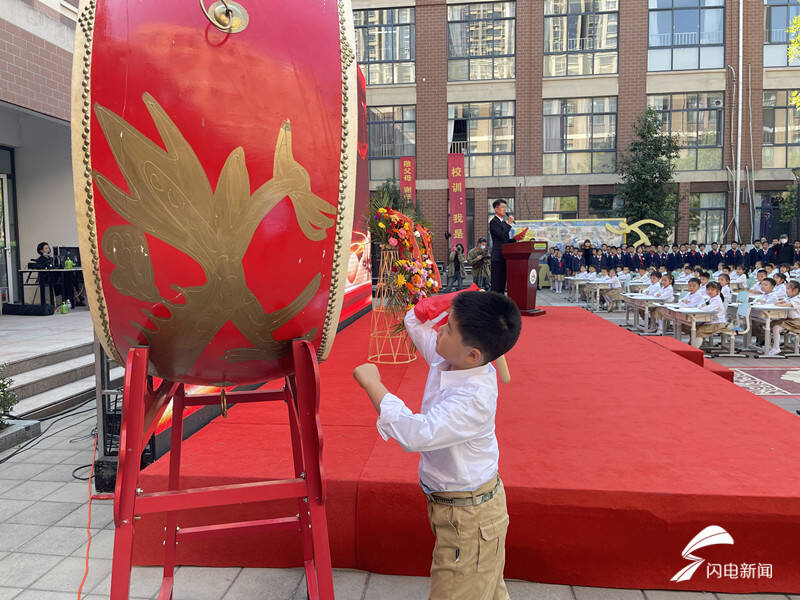 一年级学生代表击鼓为新生鸣志,一鼓立德修身,二鼓见贤思齐,三鼓学而不厌,孩子们立志勤学。
