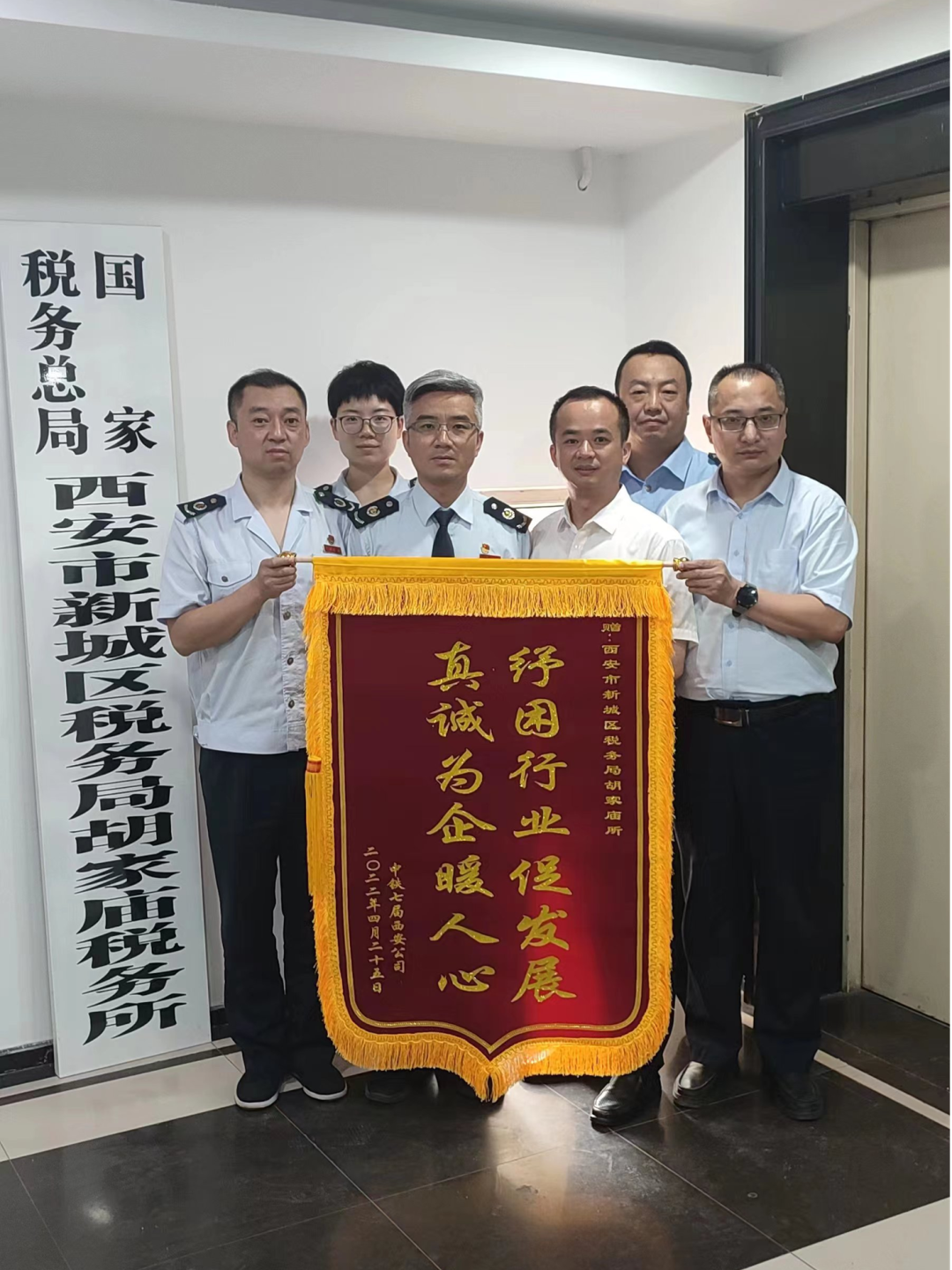 近日,中铁七局集团西安铁路工程有限公司一行人带着锦旗来到新城区税务局,向税务部门各项惠企利民举措表达感谢。