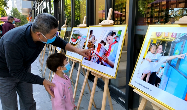 活动现场,50余幅获奖摄影作品整齐排列展出,引得市民纷纷驻足停留,拿出手机拍照打卡,盛赞获奖作品之美。