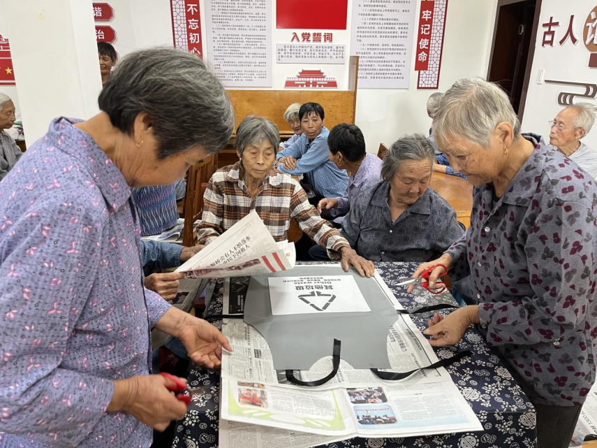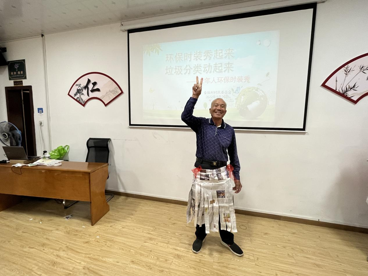 旧报纸、硬纸板、环保袋......它们的命运通常是被回收,但在金扬村老人们的奇思妙想下,它们变成了一件件风格各异的创意服装。为了提高老年人的环保意识,倡导低碳生活理念,养成节约资源的好习惯,近日,海宁丁桥金扬村开展“环保时装秀起来,垃圾分类动起来——老年人环保时装秀”活动。