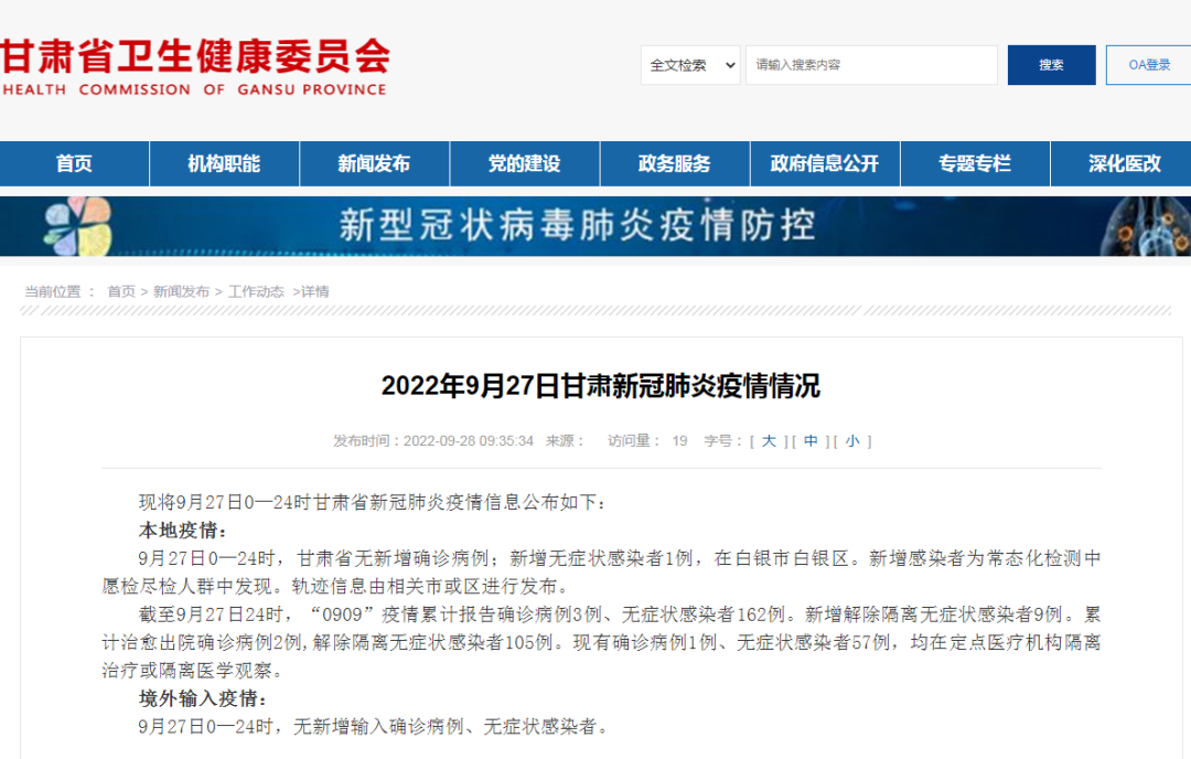现将9月27日0—24时甘肃省新冠肺炎疫情信息公布如下: