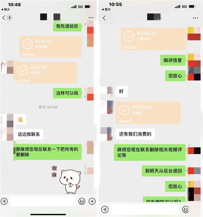 火锅店向顾客赔偿、退款截图(受访者供图)