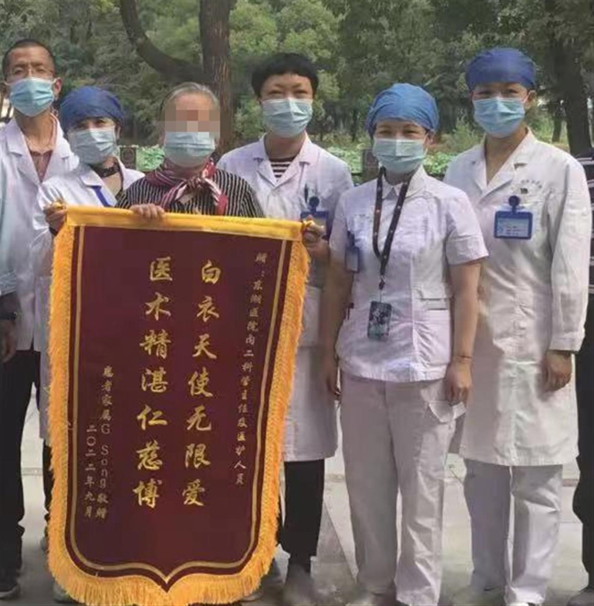 “在你们医院的专业治疗和精心护理下,我母亲的身体状况很好,每天都过得很快乐。”9月28日,武汉市东湖医院内二科主任管雅文和她的医护团队收到了一份来自太平洋彼岸的礼物,患者葛婆婆(化姓)的儿子宋先生从美国辗转托朋友送来了感谢信和锦旗。
