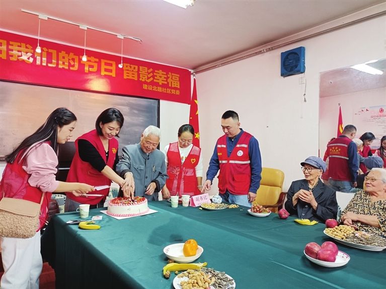 “感谢各位老人的付出,你们是国家和社会的财富……”秋高气爽,丹桂飘香。当天上午,老党员们团聚于建设北路社区,社区干部首先送上节日的祝福。饮罢菊花茶,品过水果宴,边分享节日蛋糕,老人边畅谈各自的晚年生活。社区邀请来的摄影师志愿者为大家分别合影,留下老人最美的笑容。“我和老伴很少合影,感谢社区为我们留下珍贵的瞬间……”86岁的王爷爷特别激动。