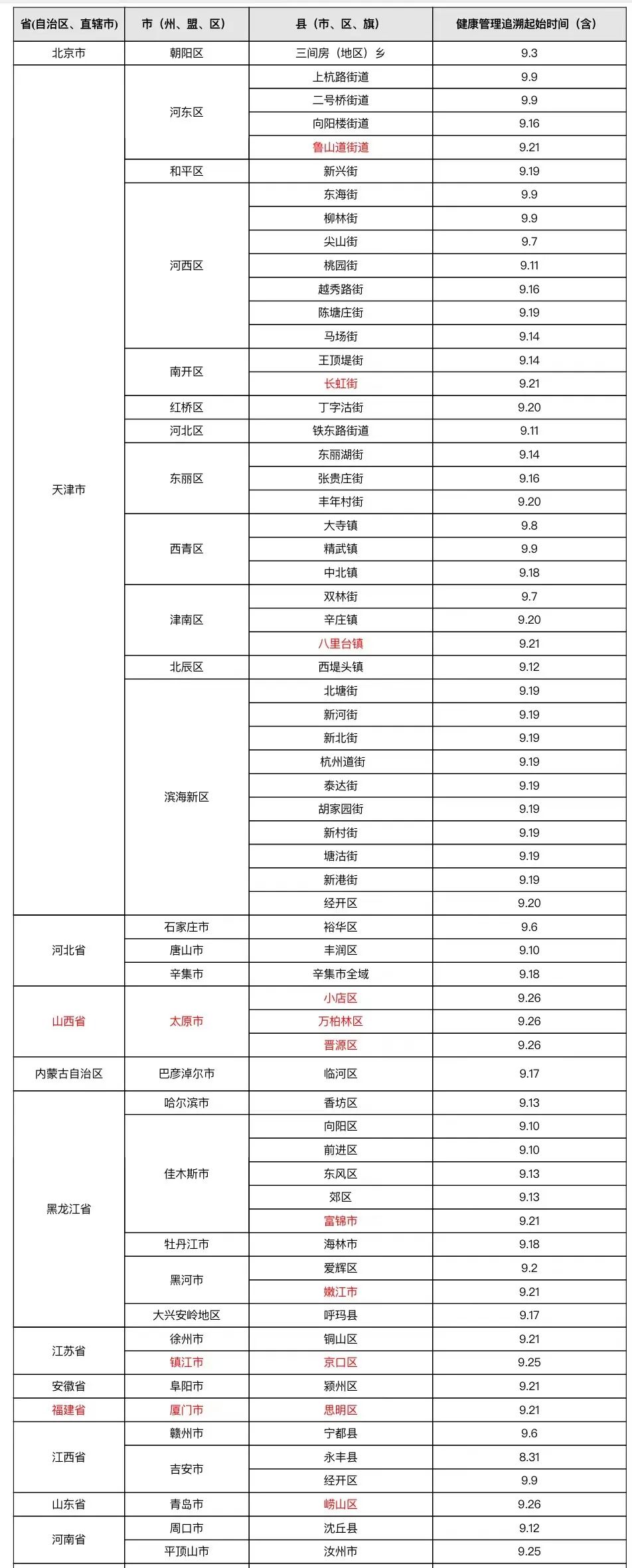 附件:1.风险区域入(返)榕人员健康管理追溯起始时间一览表