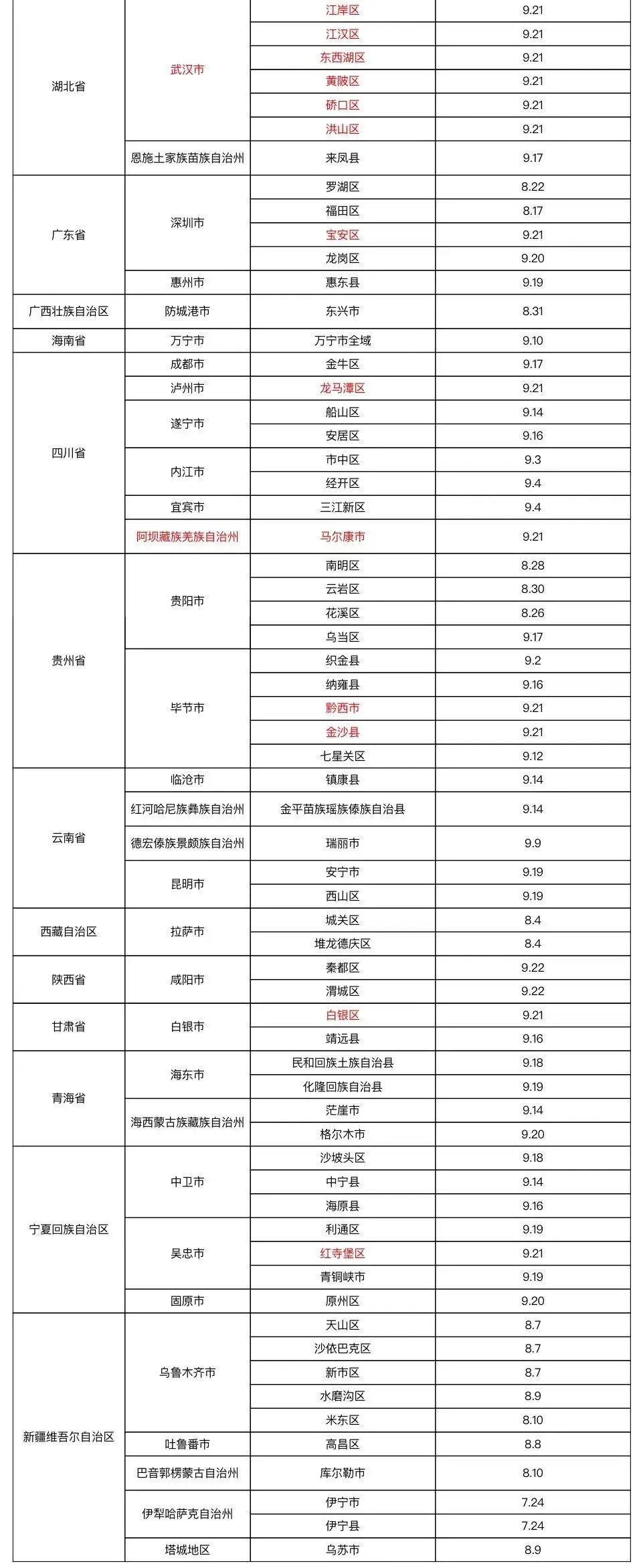 截至9月29日0时,31个省(自治区、直辖市)和新疆生产建设兵团现有疫情高风险区851个,中风险区670个,低风险区112个,涉25省63市127县。高、中、低风险区实时信息以国务院客户端(查询方法详见附件2)、各地区官方公告为准。