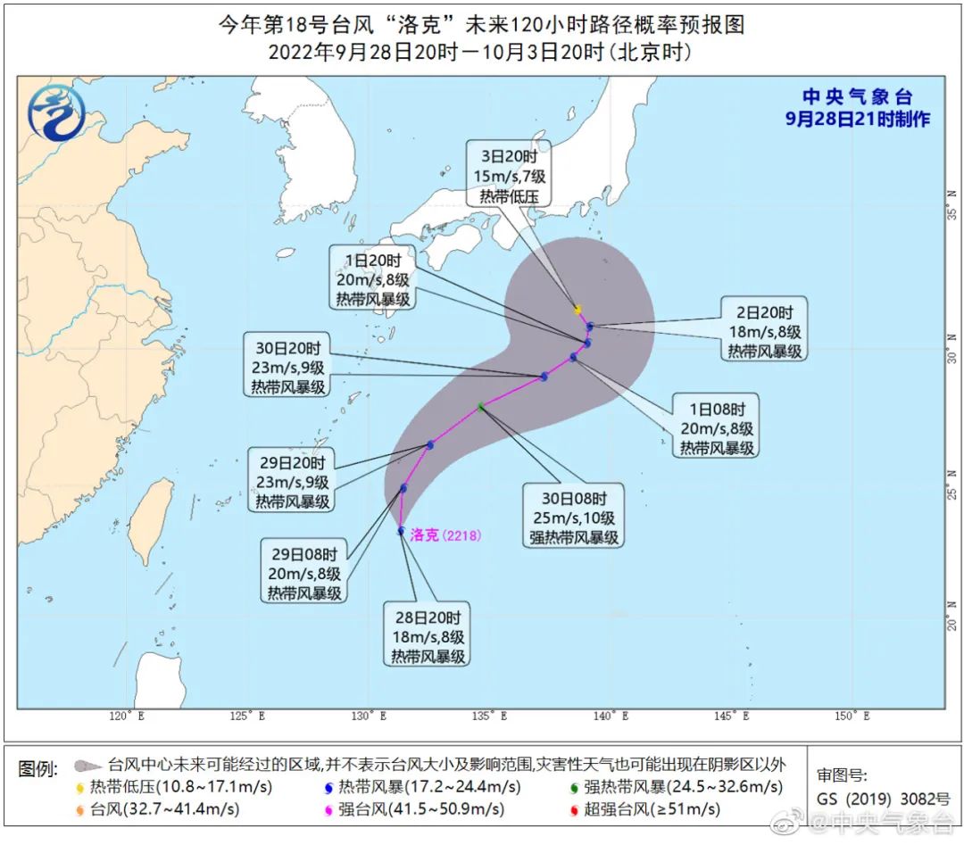 今年第18号台风“洛克”于9月28日晚20时在距离日本东京西南方向约1600公里的西北太平洋洋面上生成,预计“洛克”将以每小时15公里左右的速度向偏北方向移动,强度逐渐加强。未来五天“洛克”对我国海域无影响。