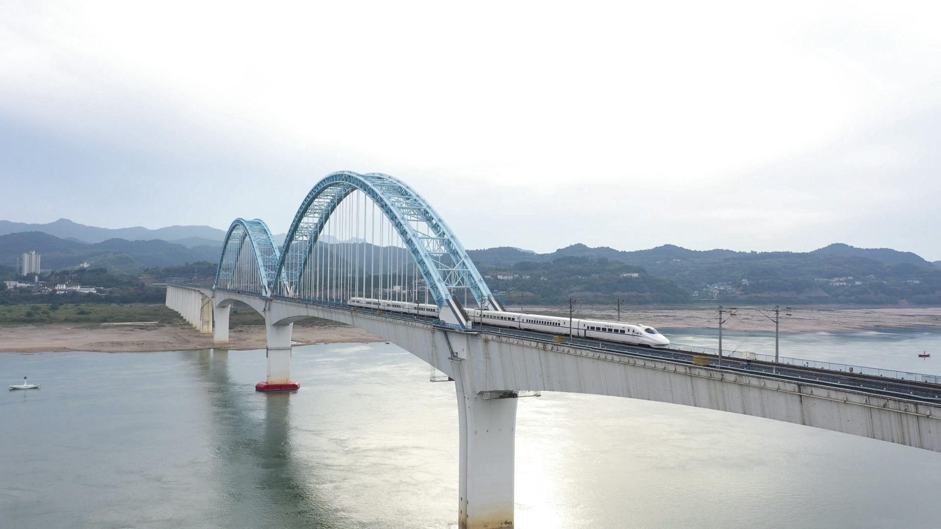 动车驶过宜万铁路宜昌长江大桥。 陈龙 摄