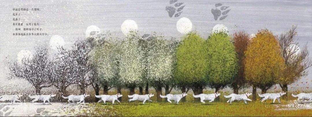 绘本《永不停止的奔跑》描绘的是一个能引起人们普遍共情的故事,是一个能走出国门的故事,故事的主角是一只名为毛毛的小狗,曾被一对夫妻共同抚养,度过了一段美好的时光。后来夫妻俩分开了,住在两个相距遥远的城市。两人都深爱着毛毛,毛毛也离不开他们中的任何一个。于是,毛毛开始了它没完没了的奔跑。一年四季,不分春夏秋冬、阴天雨雪,毛毛不停地在两座城市之间奔跑,奔跑,奔跑……