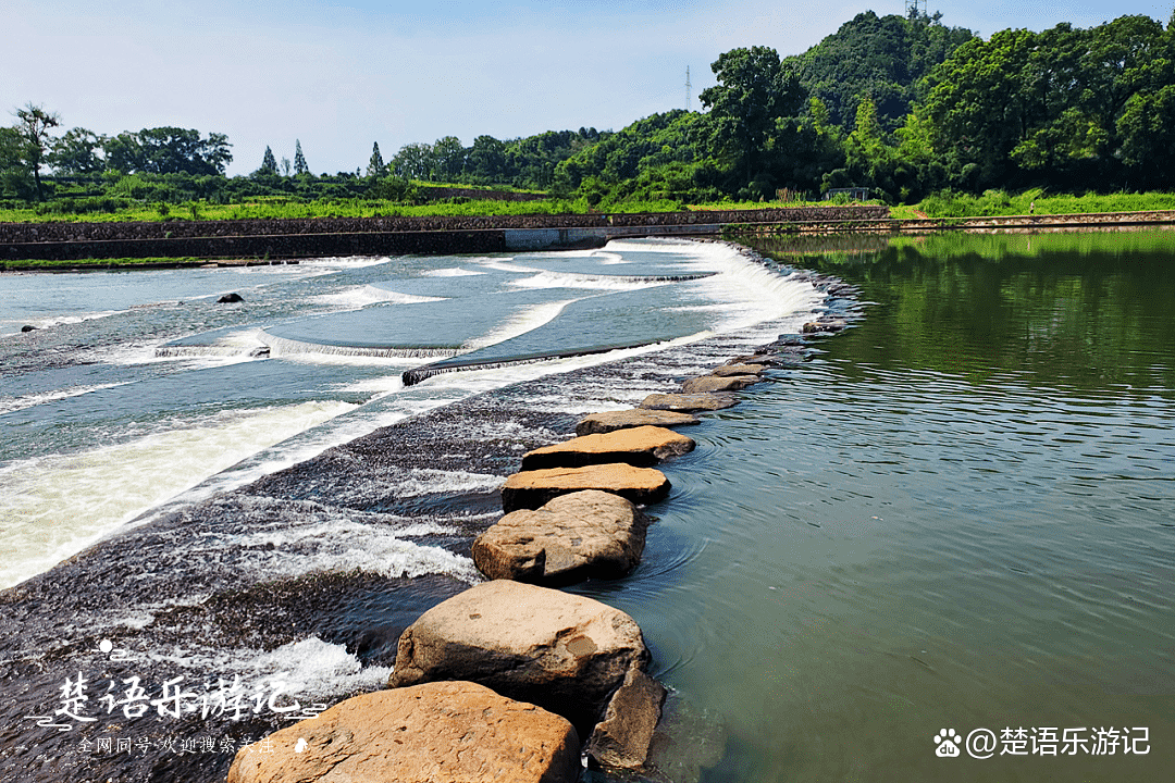 这片花海北面的宣平溪上有一座拦水坝,类似鱼鳞,又像莲花,被人称为莲花坝。宣平溪的溪面宽阔,莲花坝横跨溪面,长约120米,上游设置汀步桥,清澈的溪水从汀步桥的石间流过,在莲花堰上激起白色的水花,行人在桥上漫步或者赤脚踩在溪水里,别有一番情趣。所以,夏秋时节这里又成为很美的玩水地。