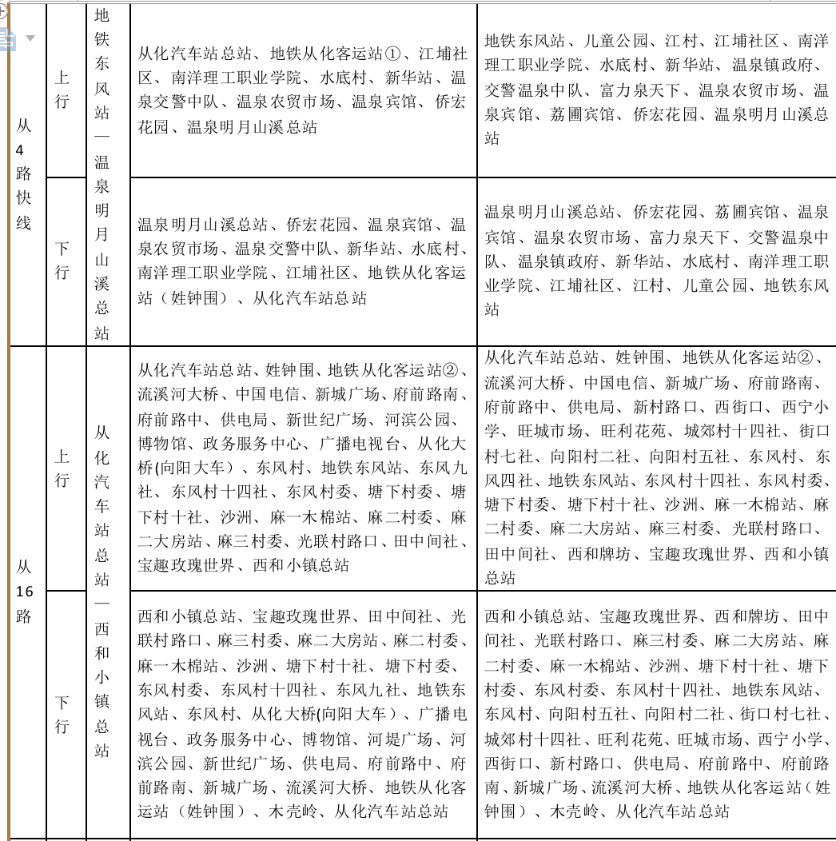 从化公汽从9月28日起对公共汽车从2路、从4路快线、从805路、从16路进行优化调整至北星大道等新开路段,覆盖从化区“三纵三横”交通网络接驳需求,弥补公交接驳空白。