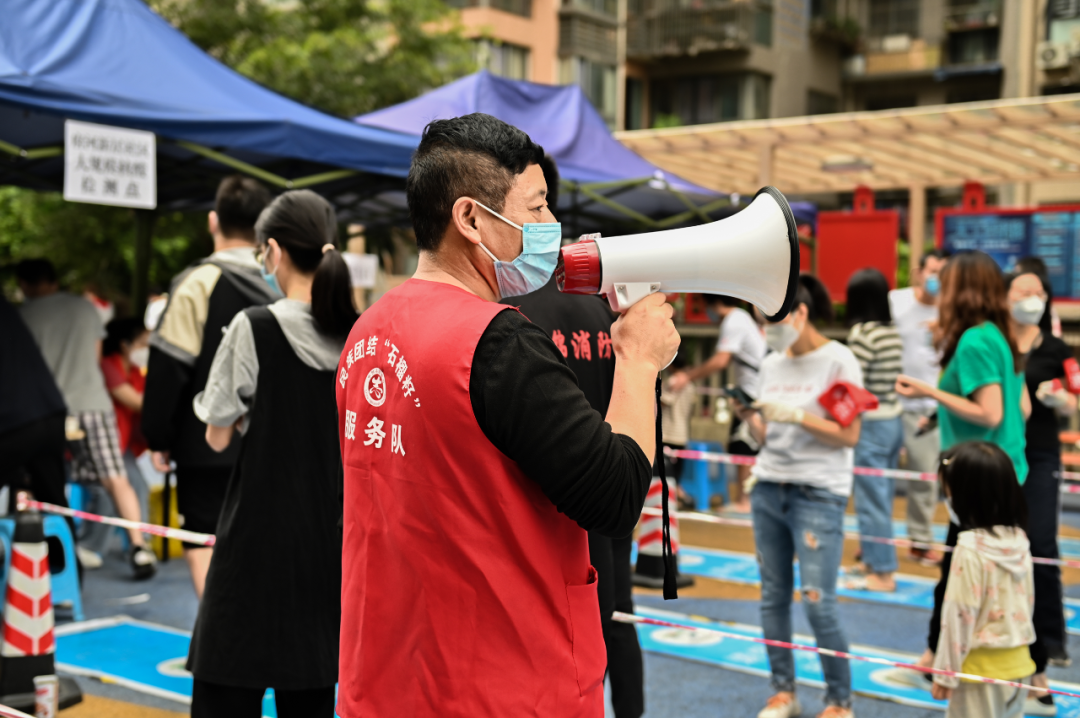 “请您佩戴好口罩,提前打开健康码,前后间隔一米...”这是成都市金牛区西华街道府河新居社区民族团结“石榴籽”服务队在成都“8.25”疫情期间参与社区防疫志愿服务场景。
