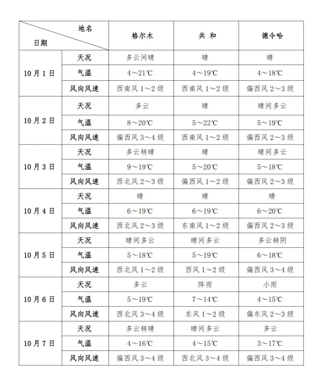1日:玉树、果洛、海南南部、黄南南部有小雨(雪),省内其余地区多云或晴。