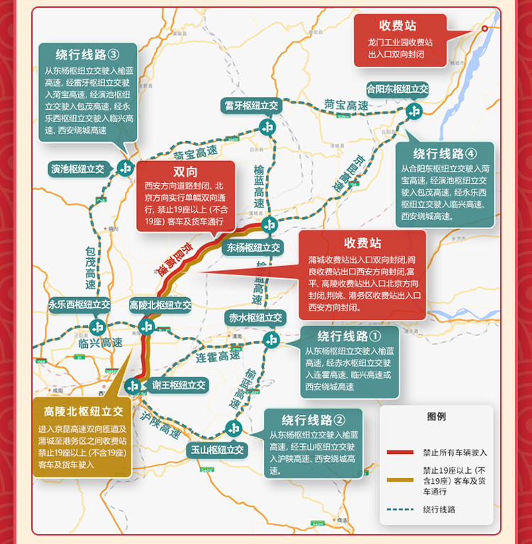 截至9月27日,全省因疫情原因封闭的高速公路服务区为:西安绕城高速汉城服务区双向,西安外环高速高陵服务区双向,银昆高速马道停车区四川方向、留坝服务区甘肃方向、陇县服务区双向,福银高速彬州服务区双向,连霍高速潼关停车区河南方向、临潼服务区双向。