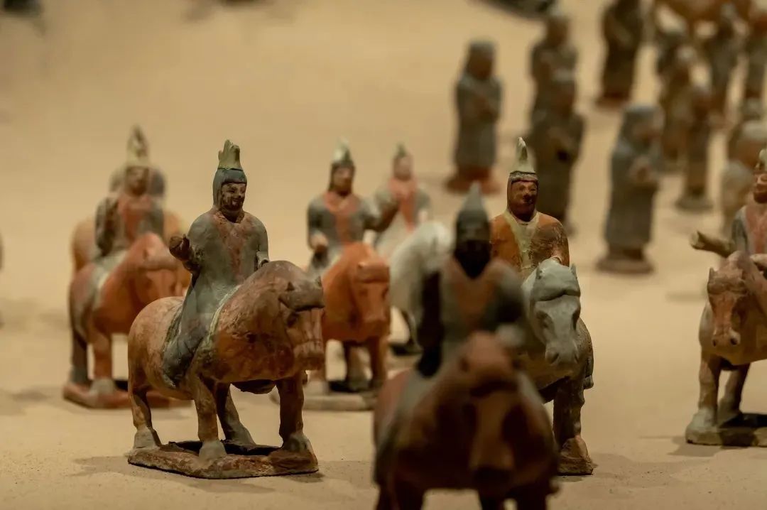 宋绍祖墓规模盛大的出行队列以众多武士为仪卫,以华美的牛车为中心,前面是头戴鸡冠形帽的轻装骑兵(战士和战马都不披甲),后面是甲骑具装的重装骑兵(战士和战马都披铠甲),仪仗俑、乐舞俑、侍俑、胡俑以及车辆、动物、家居生活模型间于其中,是承袭西晋以来中原随葬俑群的传统。同时,宋绍祖墓中出土了6辆陶车,可分为四种车型,前导、传乘、副车、主车依次排列,形成了一套较为完整的车舆系列。