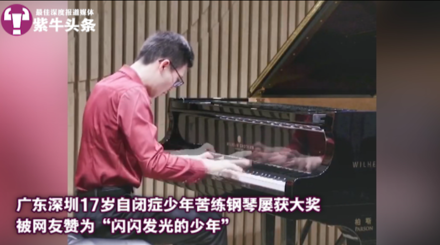 近日,广东深圳男孩舒海峰在网络上再度引起关注,今年17岁的他全神贯注弹钢琴的样子,迷人而优雅。你一定想不到,聚光灯下穿着西服帅气弹琴的少年,竟是一位自闭症患者,三级精神残疾,有注意力缺陷,存在手部神经发育障碍等症状。在一家人的悉心培养下,如今的舒海峰不仅多次获得钢琴大赛的奖项,还曾在舞台上与郎朗四手联弹,赢得满堂喝彩。国庆前夕,舒海峰的妈妈葛芳芳接受扬子晚报紫牛新闻记者采访时说:“海峰能被网友关注与祝福,我很欣慰。马上国庆了,去年海峰弹了《我爱你中国》,今年打算弹《我和我的祖国》,用琴声祝福祖国!”