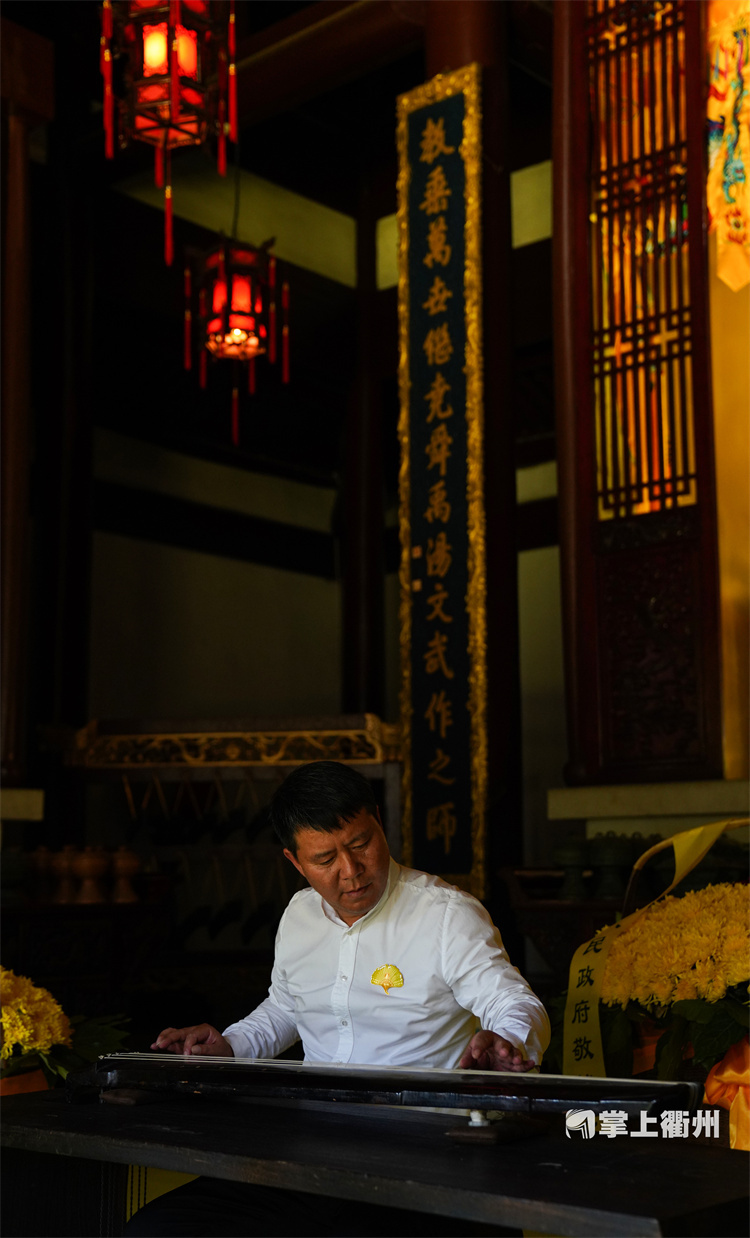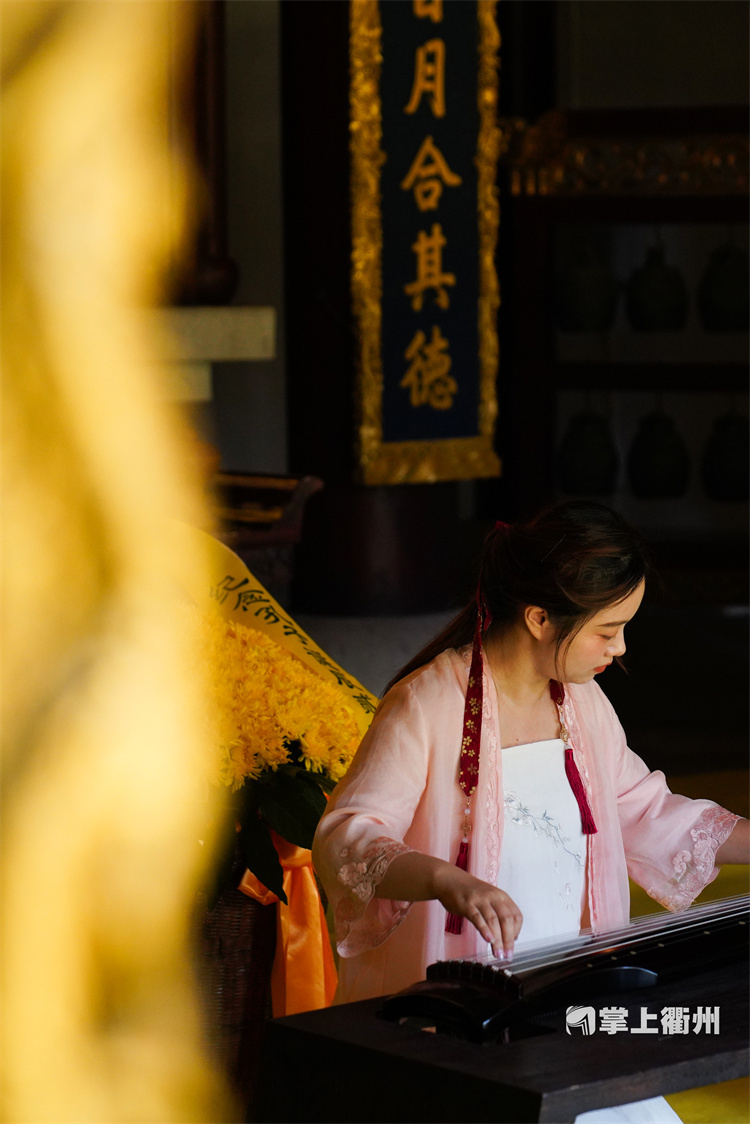 9月28日,衢州举行纪念孔子诞辰2573年祭祀典礼。当天下午,南宗孔氏家庙举办宋代大成殿专属古琴“清流戛玉”品鉴雅集。衢州琴友汇聚孔子坐像前,品鉴传世名琴,以乐行礼,以琴祭孔。雅集上的琴音或清丽优雅、或古朴雄健、或跌宕起伏,余音绕梁。