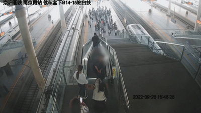 9月26日下午,南京南站,两名女子在站台上争吵,此时G7485列车已经进站。