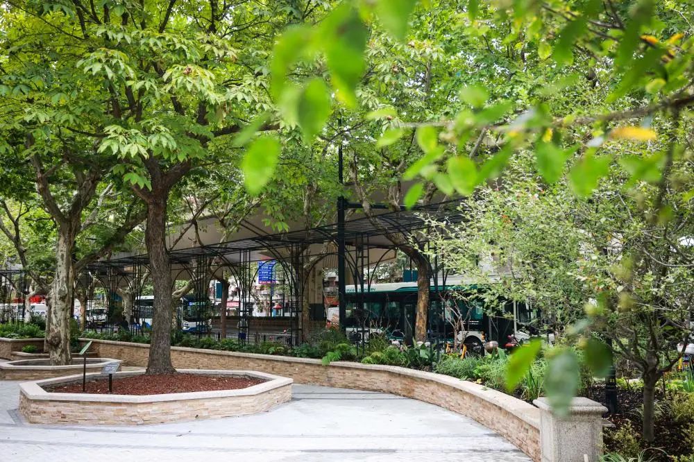 改造后的公园北京西路区域,视野宽阔,视线通透,三段景观各具特色,与街区相融合。