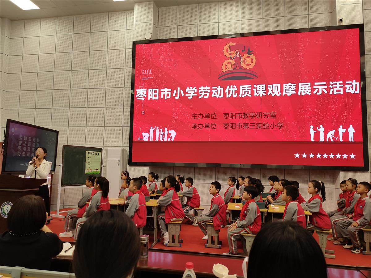 湖北日报客户端讯(通讯员冯少梅 孙东峰)为进一步推进全市中小学劳动教育工作,促进学校开足开好劳动课程,加快全市劳动教育师资队伍建设。9月28日,枣阳市教学研究室举办全市小学劳动优质课观摩展示活动。全市各乡镇学科教研员、市直小学分管领导和全市劳动骨干教师100余人参会。