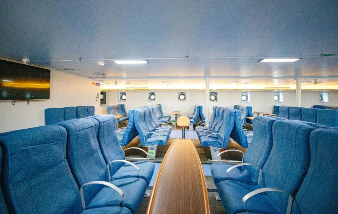 据悉,“嵊翔15号”轮是嵊泗县目前为止载客量最大的常规客轮。与以往客轮不同的是,该船共分为四层,载客定额814客位,客舱座位间距及走道格外宽敞,乘坐空间更舒适。