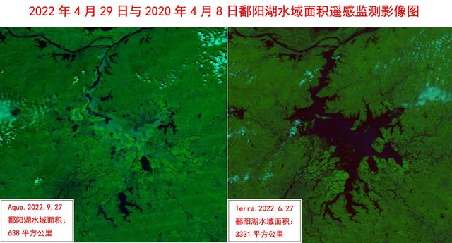 根据Aqua卫星资料最新监测,鄱阳湖主体及附近水域面积为638平方公里,较历史同期(历史同期平均为2252平方公里)偏小7.2成,相较6月27日今年监测到的最大水域面积3331平方公里减小8成,较9月19日监测到的历史最小水域面积651平方公里减小13平方公里,为历史新低。