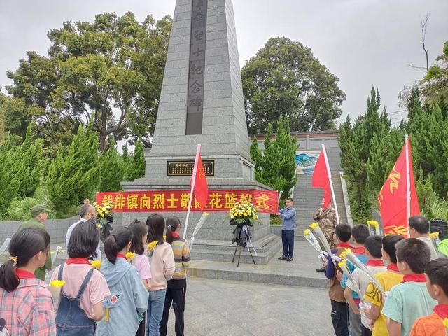 9月29日上午,茂名信宜市钱排镇党委政府组织退役军人、军烈属、镇村党员干部、中小学师生等各界代表约70人,前往镇内革命老区村庄云开村烈士纪念碑广场,举行祭奠革命烈士活动。祭奠活动简单而庄重,现场气氛庄严肃穆,全体人员向革命先烈默哀,瞻仰烈士纪念碑,并行鞠躬礼。各界代表向烈士敬献花篮。云开村“兵支书”黄天现场深情讲述革命先烈可歌可泣的英雄事迹。