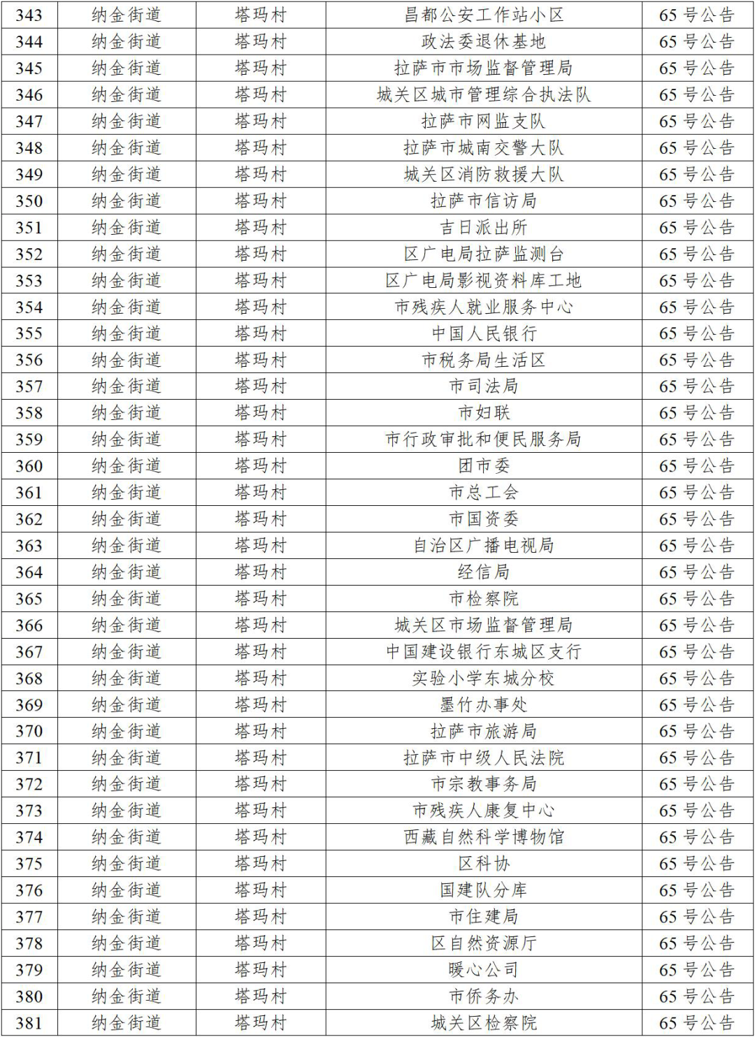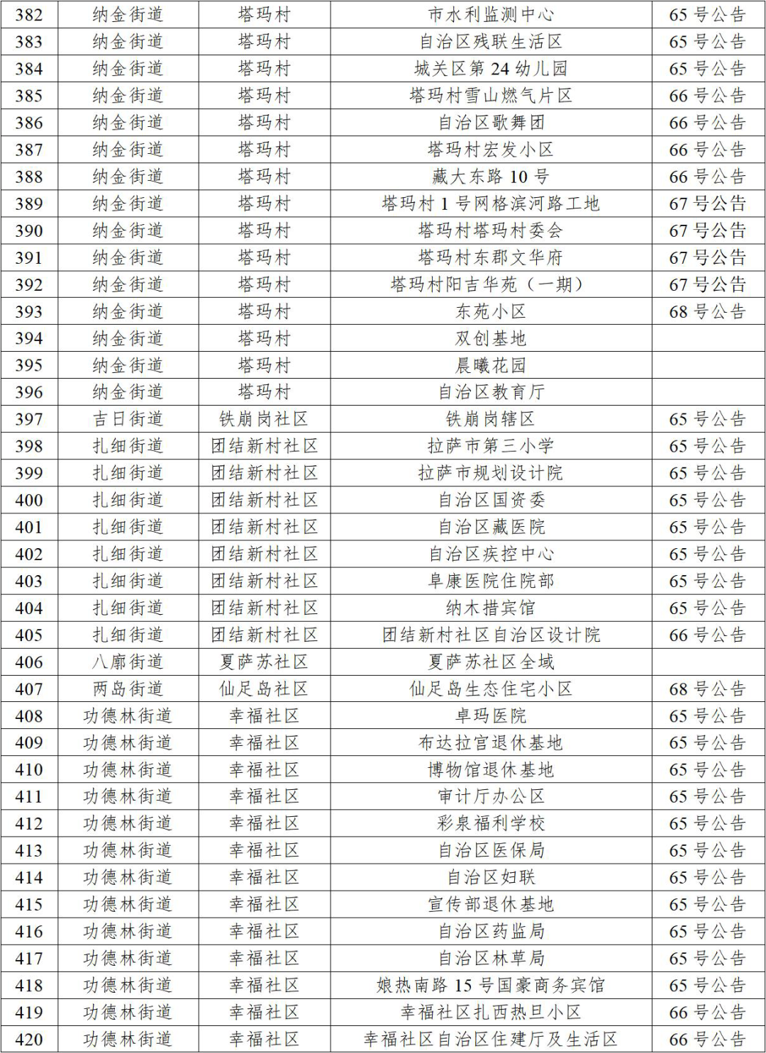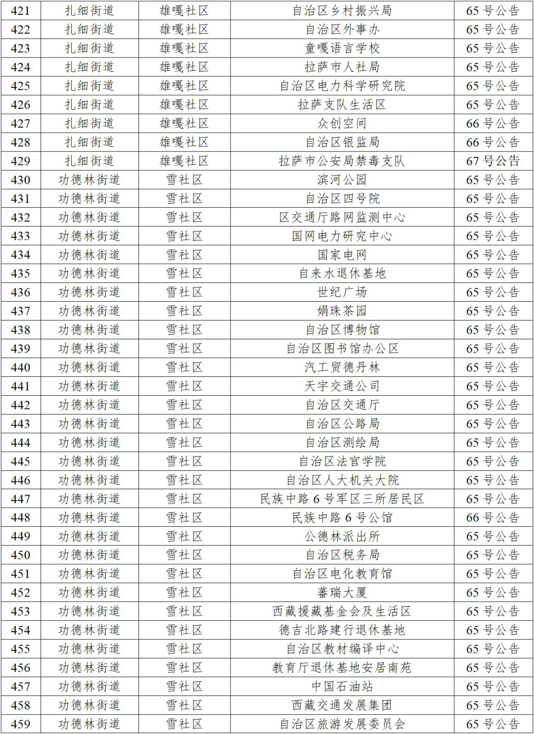 2.功德林街道拉鲁社区(国土温馨苑、中国联通城关区天海路基地营业厅、自治区规划院、自治区能源中心、自治区文物局、市自然资源局、央广西藏记者站)。