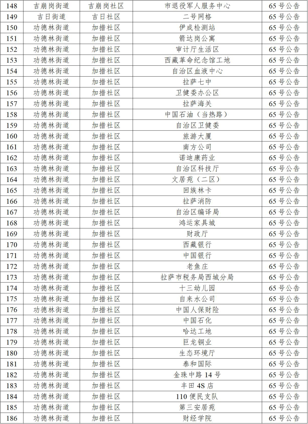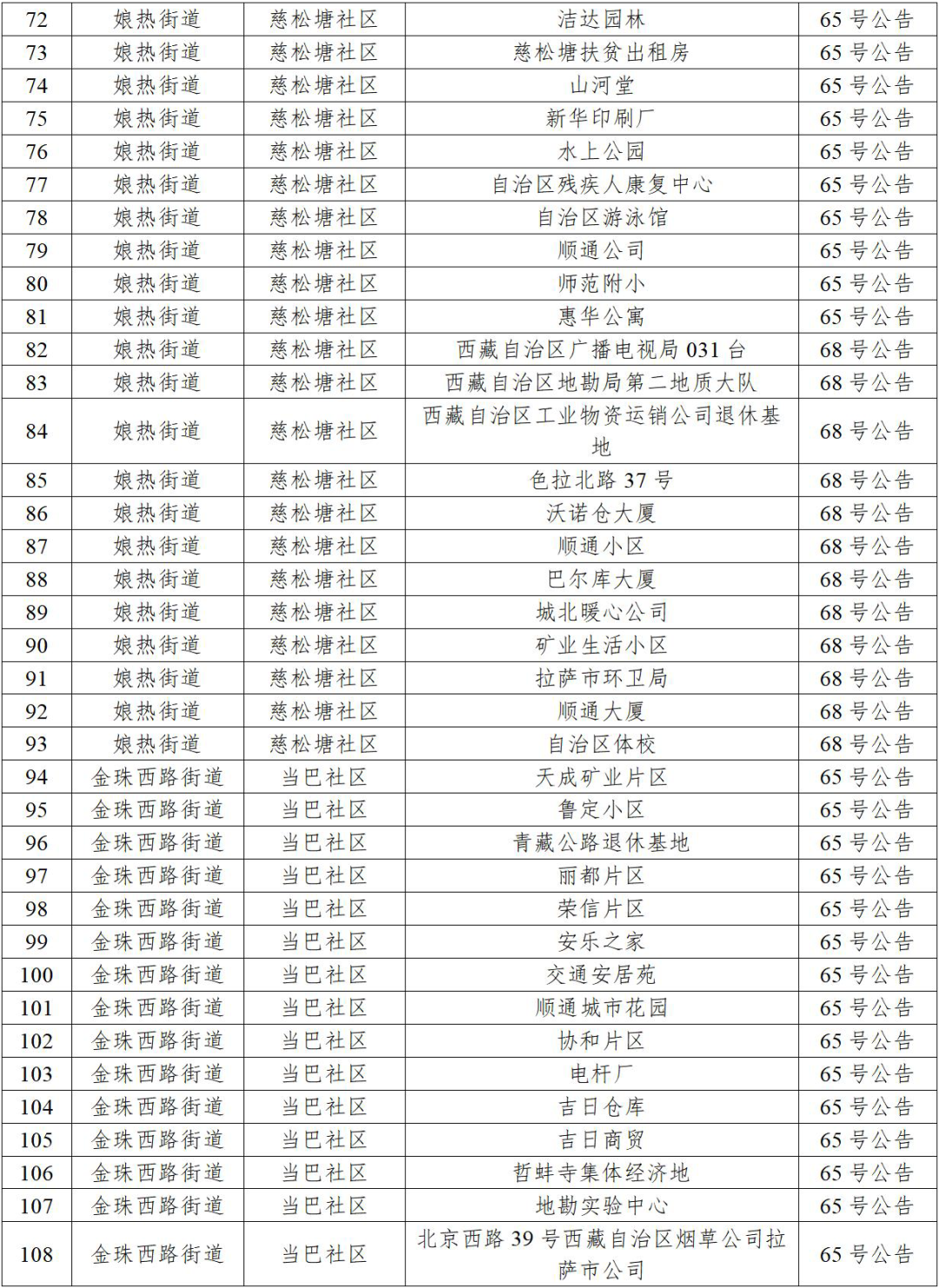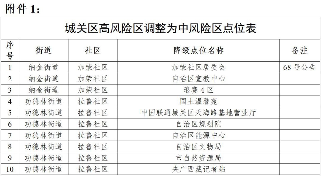 2.功德林街道拉鲁社区(国土温馨苑、中国联通城关区天海路基地营业厅、自治区规划院、自治区能源中心、自治区文物局、市自然资源局、央广西藏记者站)。
