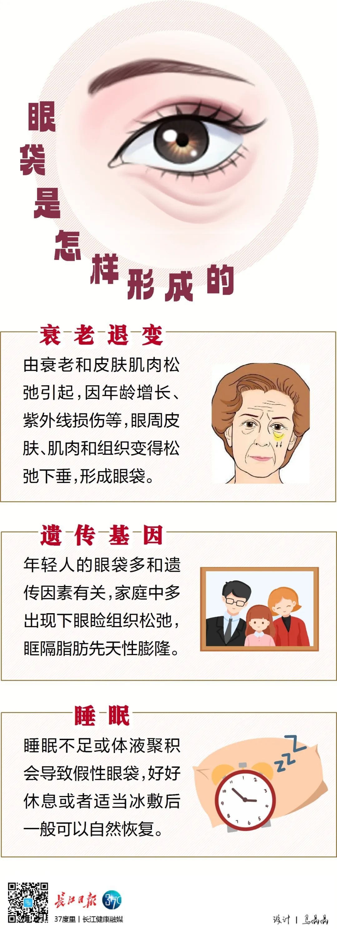 眼袋是眼睑下方一块膨出的带状组织,其位于卧蚕之下,涉及的区域较大,看起来明显给人以苍老感。