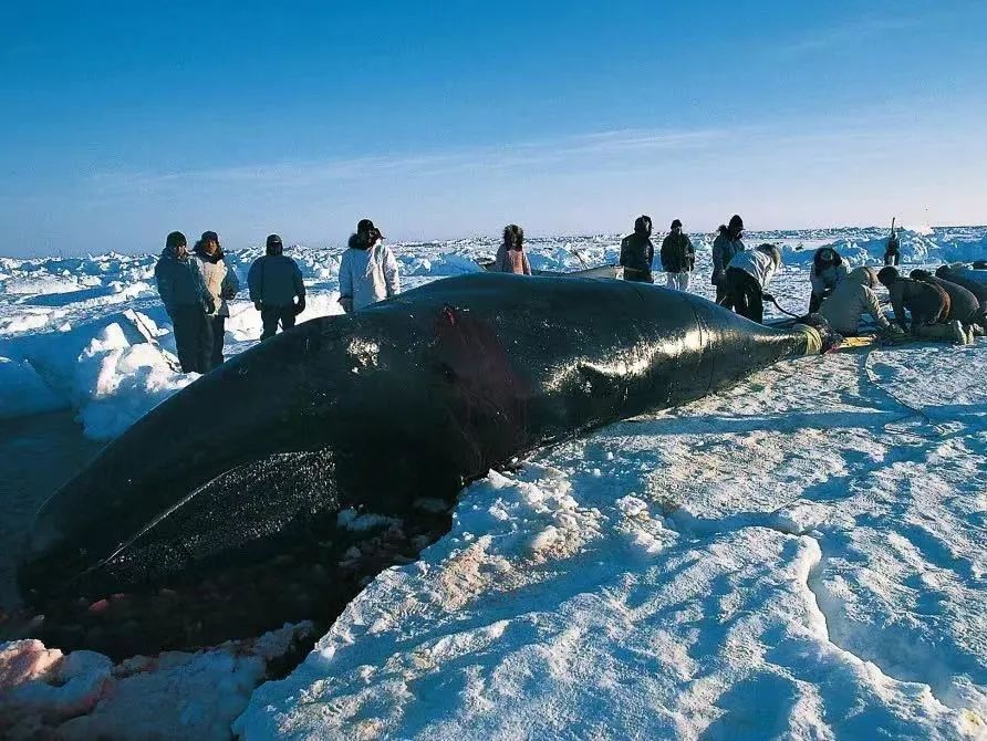 当他们开始捕猎时,那样一个景象——划着皮舟追赶鲸的人类,与被追赶的鲸,都生存在同一条生命的延伸线上,最后就看谁能胜出了。这个时候,一位老婆婆,站在空无一人的冰丘上,对着大海跳舞,舞蹈动作相当缓慢,看起来像是在述说着什么,她也在流着眼泪。这大概就是这个民族自古流传下来的,献给鲸的感谢之舞。爱斯基摩人将鲸拉上岸来,这个老婆婆像是疼爱自己的孩子般拍打着鲸的身体,村民们围绕在鲸身旁,祷告之后,开始肢解鲸。最后只剩下巨大的下颌骨,所有人聚在一起,将鲸下颌推向大海,然后齐声大喊:“明年还要回来喔!”