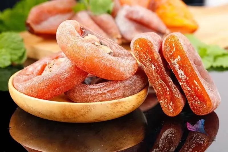 柿饼口感齁甜,是柿子经过干制处理后的食物,水分含量为33.8%,甚至更低。