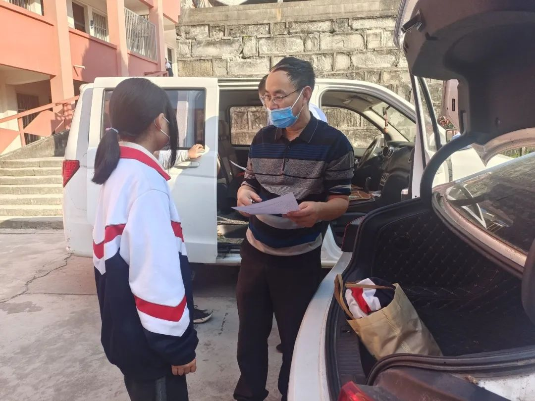 学校根据学生家庭地理位置,设置了13个衣服存放点,并和村委领导进行了有效沟通,包保教师一家一户电话联系,家长们将学生的换洗衣物打包、消毒后放到距家最近的存放点。